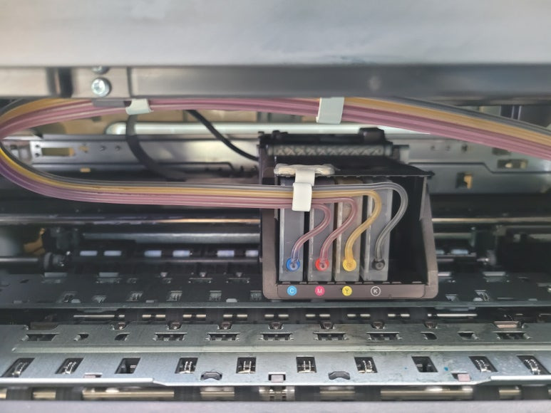 cf. 잦은 헤드 청소는 잉크손실, 내부오염, 헤드 노후화 및 칩판부 슈팅에어라인 비닐탈락, 챔버**터짐, 노즐 훼손, 헤드 챔버 내부 크랙 등 영향을 줍니다. 꾸준한 주기적인 4색 출력 관리가 필요합니다. 열분사 방식으로 잉크가 빠진 상태에서 사용시 헤드 노즐이 타서 망가질 수 있으니 사용자재 바랍니다