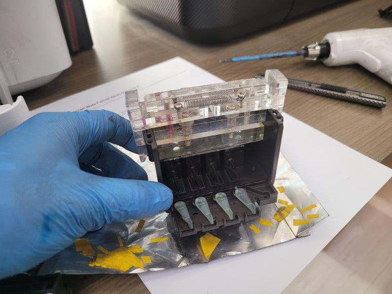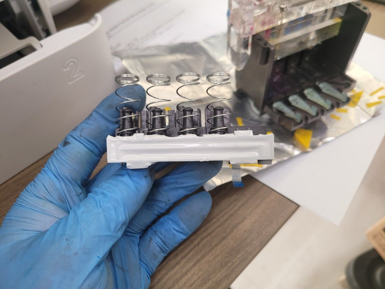 ● 프린터 헤드 챔버 터짐 탄성접착제 도포 및 테이핑