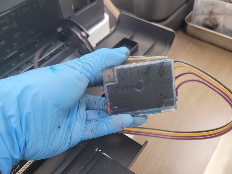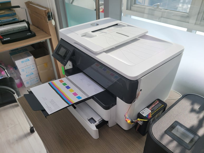 경기 하남시 미사 현대지식산업센터 한강미사1차에 위치한 회사 사무실에서 문서 및 팩스용으로 사용중인 HP 오피스젯 프로 7740 무한잉크 팩스복합기인데 소모품 시스템 문제로 출장수리 요청하여 스케줄 잡아 이동, 출장수리 완료했습니다.