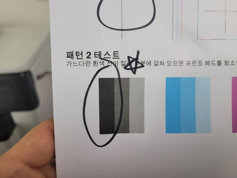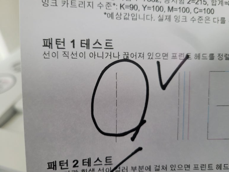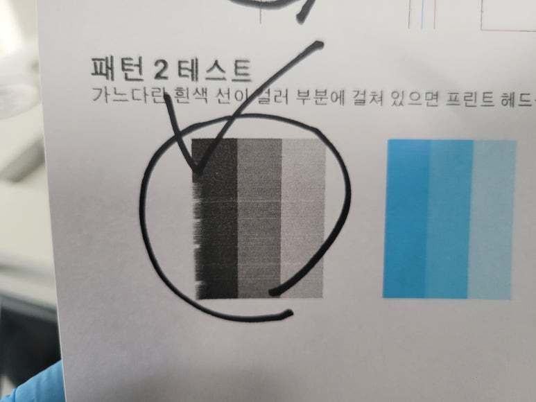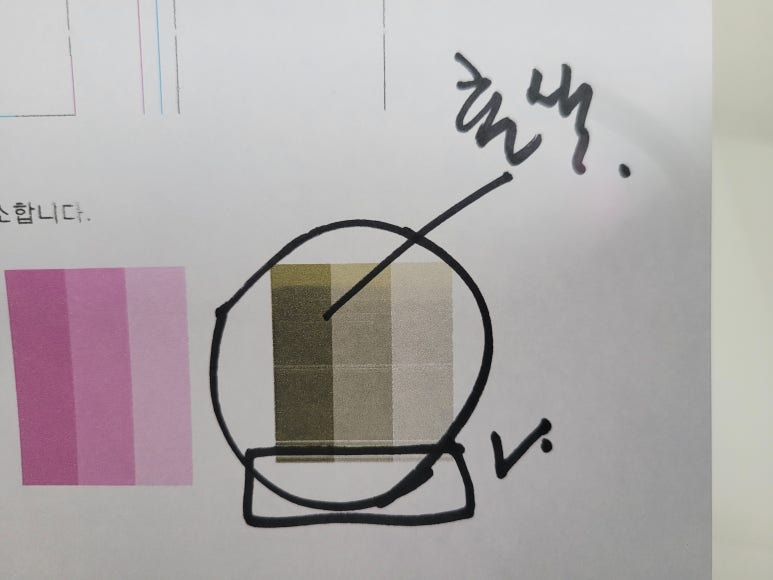 ● 카트리지 잉크 석션 패킹부싱 공기유입점검, 풀배경 출력테스트