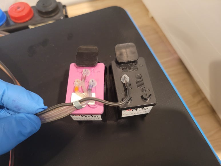 ● 카트리지 석션홀더 장착 및 카트리지 석션, 잉크 차징 및 패킹 공기유입점검