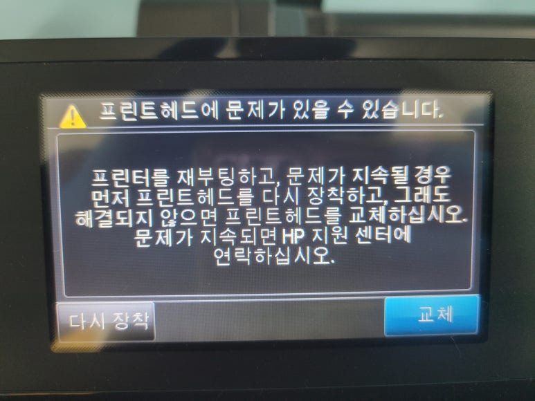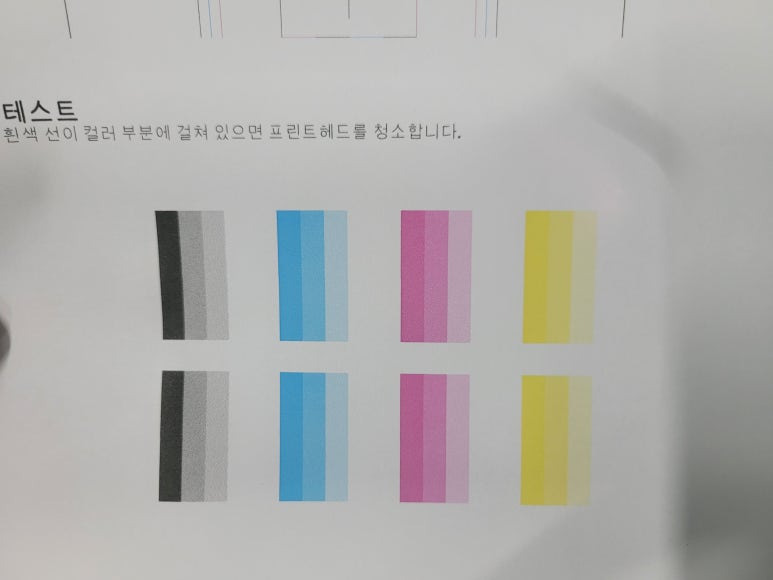 ⚠ 이상 시에만, 액정에서 설정 ➡ 유지 및 보수 ➡ 헤드청소 3단계 1회만 진행 (개선없다면 수리요청)