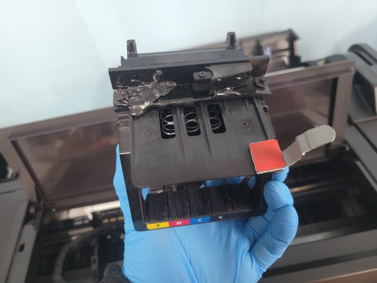 3) 미세한 노즐 막힘은 헤드 챔버 부분을 터지게 합니다. 사람도 뇌혈관이 막히면 터져 사망에 이르게 됩니다. 헤드도 노즐이 막히면 헤드가 터져 잉크가 흐르고 교체해야 하는 비용을 지불하거나 폐기해야 합니다. (중환자수술 또는 뇌출혈사망)