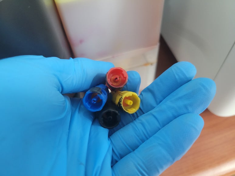 cf. 잦은 헤드 청소는 잉크손실, 내부오염, 헤드 노후화 및 칩판부 슈팅에어라인 비닐탈락, 챔버**터짐, 노즐 훼손, 헤드 챔버 내부 크랙 등 영향을 줍니다. 꾸준한 주기적인 4색 출력 관리가 필요합니다. 열분사 방식으로 잉크가 빠진 상태에서 사용시 헤드 노즐이 타서 망가질 수 있으니 사용자재 바랍니다