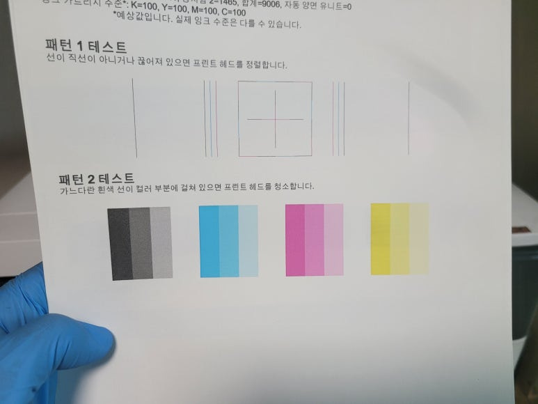 2) 매일 체크하지 않으면 노즐이 미세하게 막히면 헤드 청소를 해야 하는데 헤드청소시 이때, 잉크가 정말 많이 사용됩니다. 잉크 낭비까지 생각한다면 평소 출력해 체킹하는 게 좋습니다.(고지혈/동맥경화시 의료비가 듭니다)
