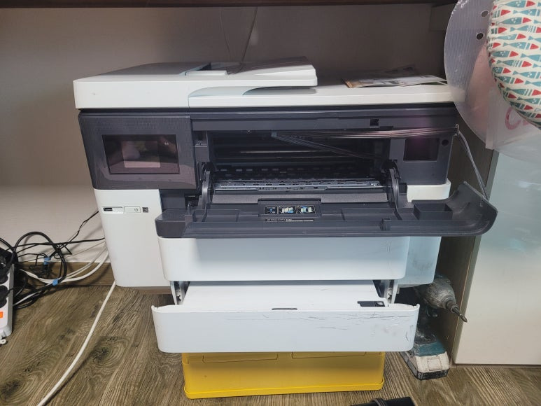 경기도 양평군 소재, 오피스에서 A3 도면 및 문서, 팩스, 스캔용으로 사용하는 HP 오피스젯 프로 7740 무한잉크 팩스복합기인데 HP 정품이 아닌 칩이 감지됨 문제로 출장수리 요청하여 스케줄 잡아 이동, 출장수리 완료했습니다.