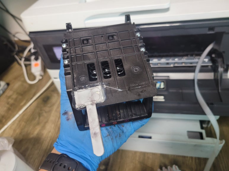 ● 프린터 헤드 챔버 터짐 탄성접착제 도포 및 테이핑