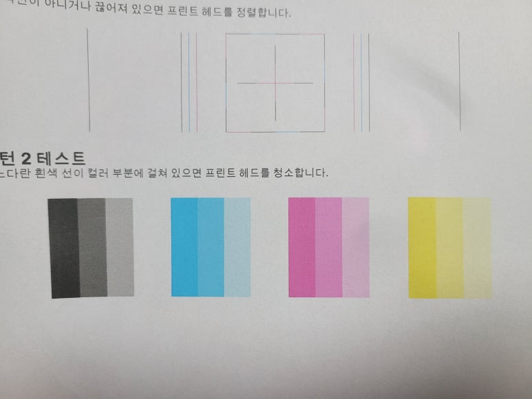 ⚠ 이상 시에만, 액정에서 설정 ➡ 유지 및 보수 ➡ 헤드청소 3단계 1회만 진행 (개선없다면 수리요청)