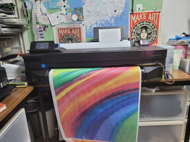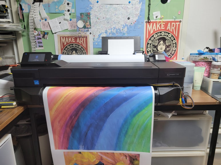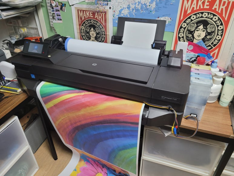 경기도 고양시 덕양구 소재 건축건설 플랜트 관련 도면 출력용으로 사용하는 HP DesignJet T120 24인치 플로터 A1 출력 대형 프린터 무한잉크인데 잉크 카트리지 소모됨으로 출장수리 요청하여 스케줄 잡아 방문 출장 수리를 완료했습니다.
