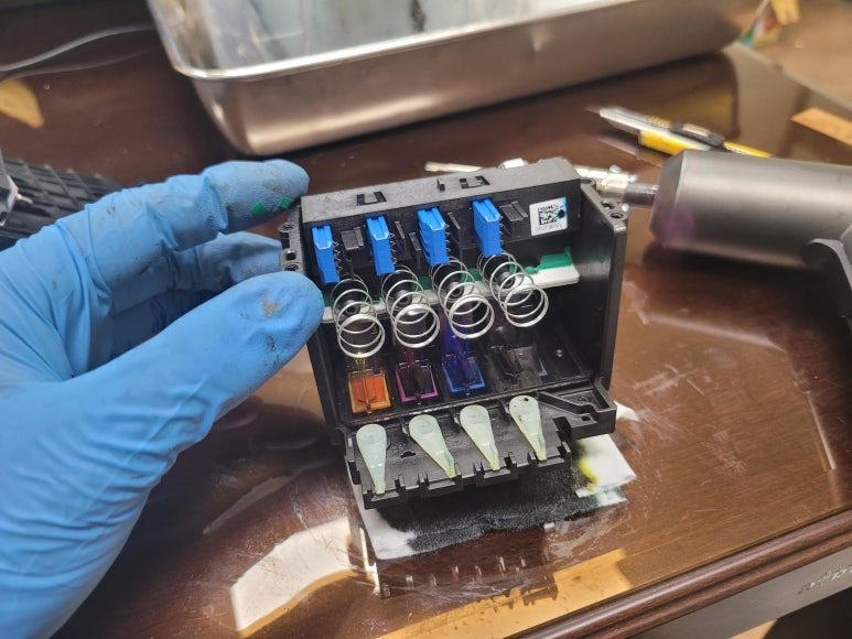 [서울 양천구 무한잉크 출장수리] HP OfficeJet Pro 8710 팩스복합기 색빠짐 출력불량, 칩판부 비닐탈락 HP 952 프린트 헤드 분해 수리