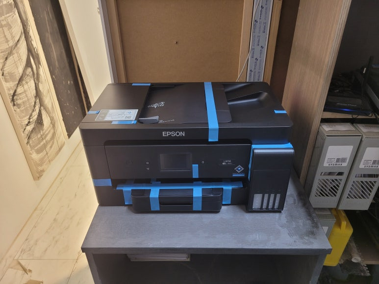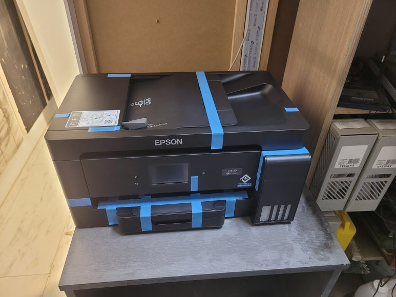 인테리어 관련 업체에서 사용중인 HP OfficeJet Pro 7612 팩스복합기가 심하게 오염되어 엡손 EPOSN 정품 무한잉크 A3 팩스복합기 L14150 출장설치 요청하여 스케줄 잡아 이동하여 설치 완료했습니다.