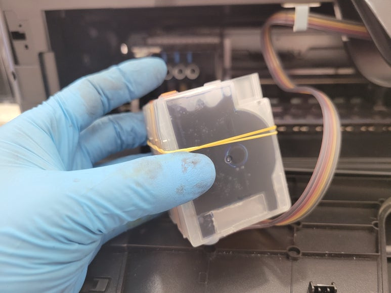● 프린터 헤드 챔버 터짐 탄성접착제 도포 및 테이핑