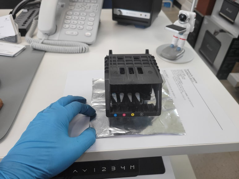 ● 프린터 헤드 챔버 터짐 탄성접착제 도포 및 테이핑