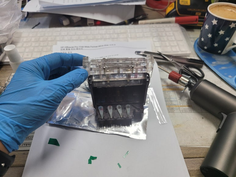 [김포시 무한잉크 출장수리] HP OfficeJet Pro 7740 팩스복합기 출력불량, 칩판부 비닐탈락 HP 952 프린트 헤드 분해 수리