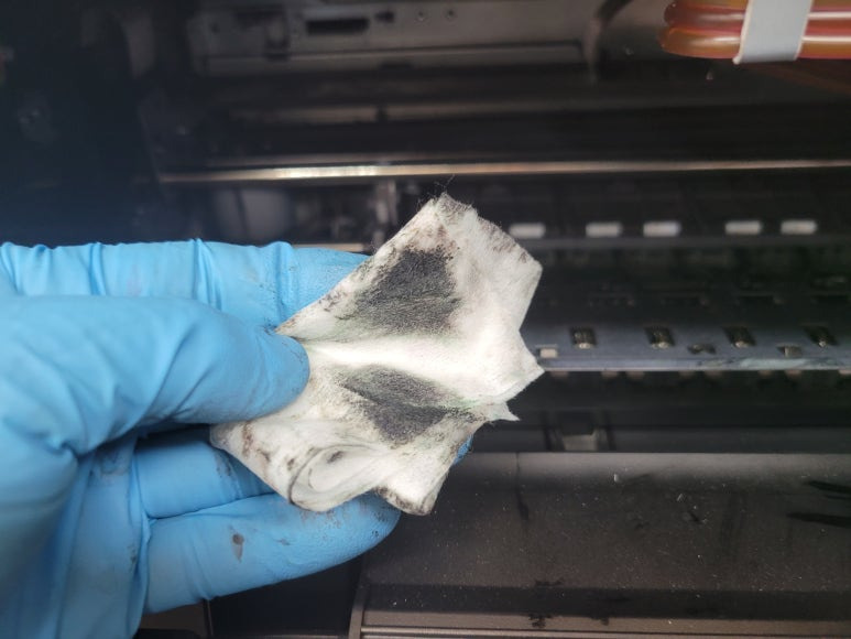 출력불량 및 잉크 카트리지 문제로 빠른 전체 점검 필요 이유 : 1. 호스 내 잉크 경화로 잉크공급 不 2. 카트리지 부싱 및 패킹 노후로 공기유입으로 잉크공급 不 3. 헤드 內 잉크공간 챔버 터짐 (칩판부 슈팅에어라인 비닐탈락, PCB 오염) 4. 스테이션 펌핑모터 불량으로 인한 잉크공급 不