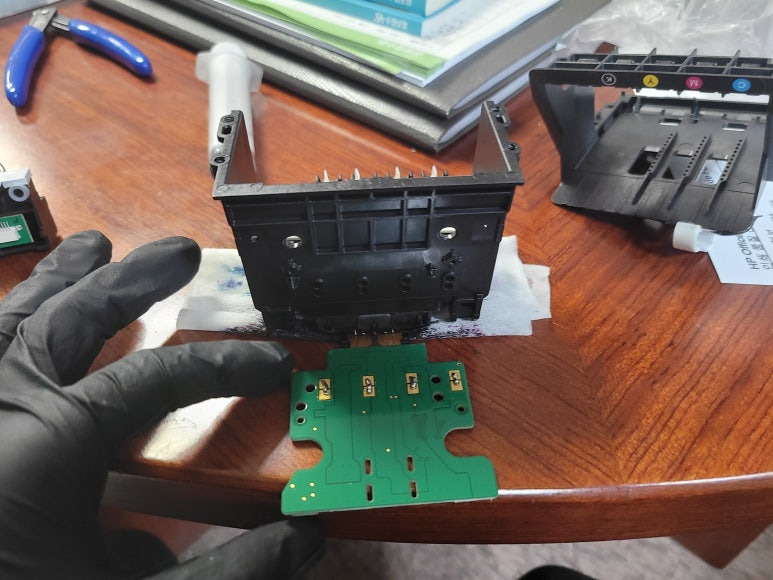 [서울 양천구 무한잉크 출장수리] HP OfficeJet Pro 7740 팩스복합기 출력불량, 칩판부 비닐탈락 HP 952 프린트 헤드 분해 수리