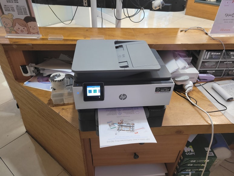 경기도 고양시 덕양구 학원 데스크에 사용할 문서 및 팩스,스캔, 복사 출력용으로사용할 HP 9010 팩스복합기 무한잉크 임대 설치 요청으로 1년 약정 자동연장 , 월 1,000장 출력기준 월 33,000원, CMS 자동 계좌이체 계약으로 HP 9010 무한잉크, 임대형 및 기업형, B2B용 (보험사, 군부대, 학교, 학원, 부동산, 핸드폰매장, 교육사 등등)으로 사용되는 칩없이 구동하는 기업형 No Chip (Chipless Solution) 무한잉크 팩스복합기 장비를 스케줄 맞춰 출장설치 완료 했습니다.