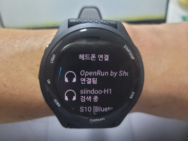 10Km 런닝에 맞춰 16곡을 가민 포러너에 넣고, 샥즈 OpenRun S805를 헤드폰 페어링/연결했다, 와우~ 사운드가 폭발~ 소름이 돋는다. 옆에서 아내의 말을 잘 들을 수 있었다.