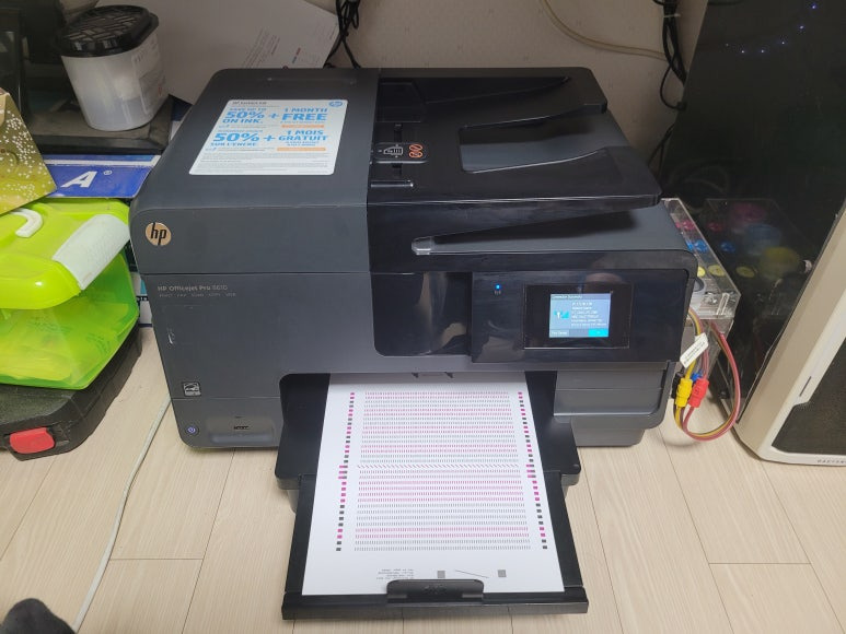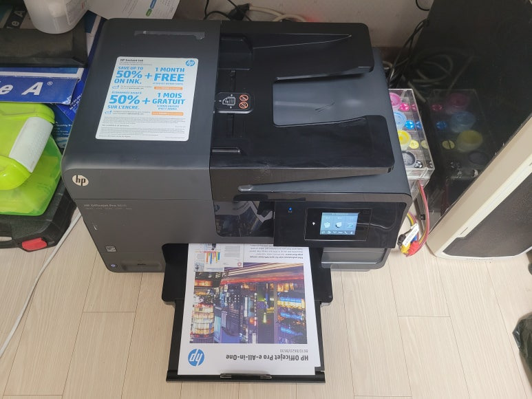 서울시 은평구에서 재택으로 인쇄 및 스캔, 복사, 문서출력용으로 사용하는 HP 오피스젯 프로 8610 팩스복합기 무한잉크인데 잉크 카트리지 소모됨 문제로 출장수리 요청, 스케줄 잡아 이동 출장수리 완료했습니다.