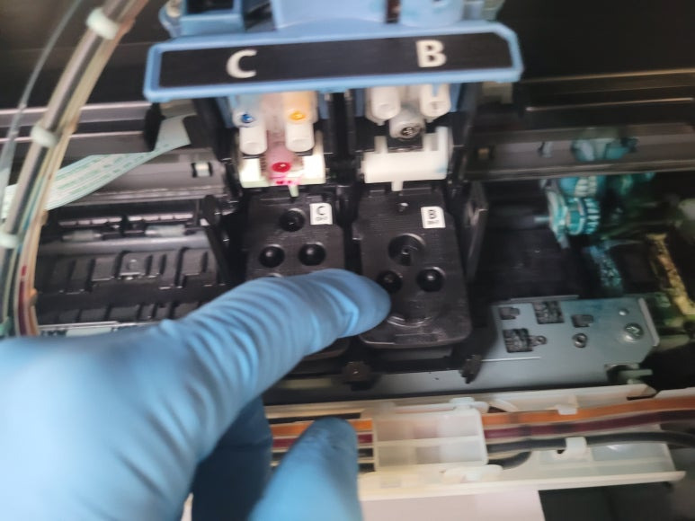 헤드/카트리지 노즐 손상 및 내부 오염 및 패드에 잉크가 차서 흐르고 문제가 발생됩니다. 캐논 5B00 발생 및 카트리지 손상의 원인이 됩니다. 평소 꾸준한 운동 (4색 이미지/사진 출력) 및 건강검진(노즐 점검)을 생활화 해주세요.