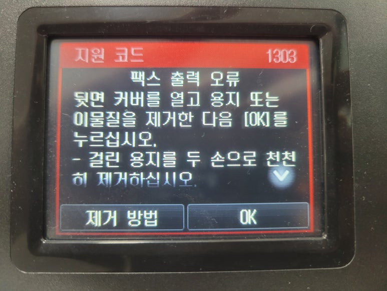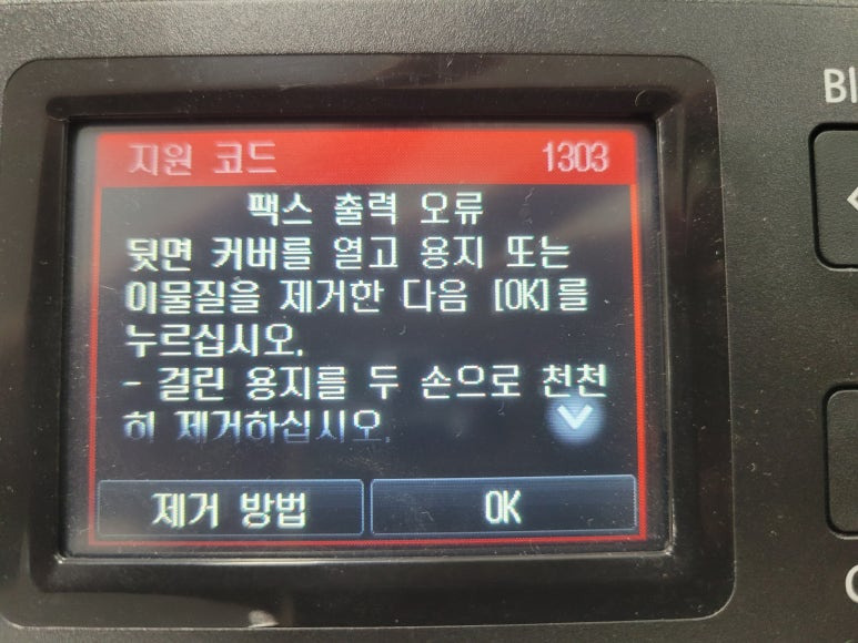 사무실에서 사용하는 캐논 맥시파이 MB2720 팩스복합기 무한잉크인데 지원코드 1303 발생으로 출장 수리 요청하여 스케줄 잡아 이동, 출장수리 완료했습니다.