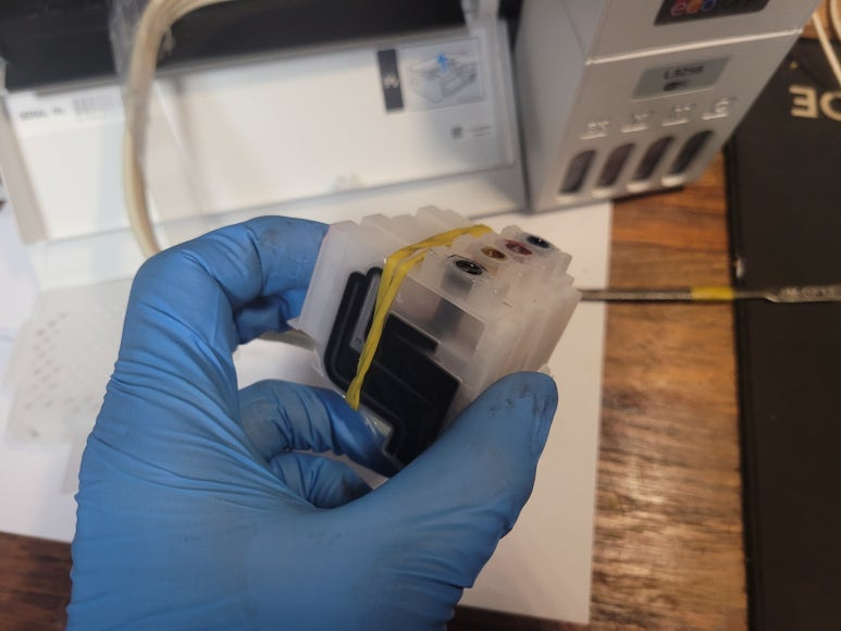 엡손 L3256 복합기 출력불량, 석션 차징 및 세정액 주입 노즐 세정 수리