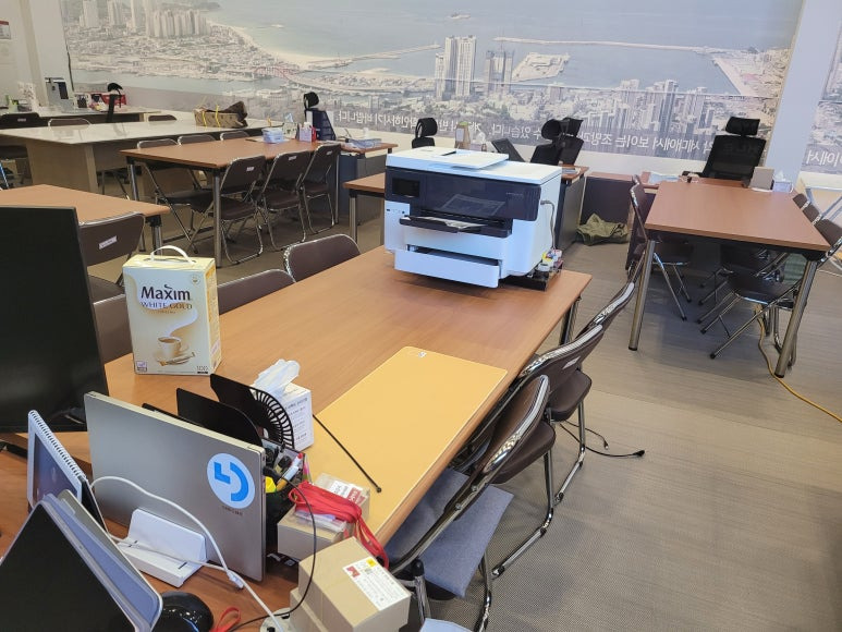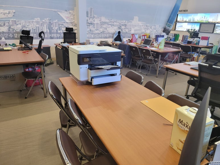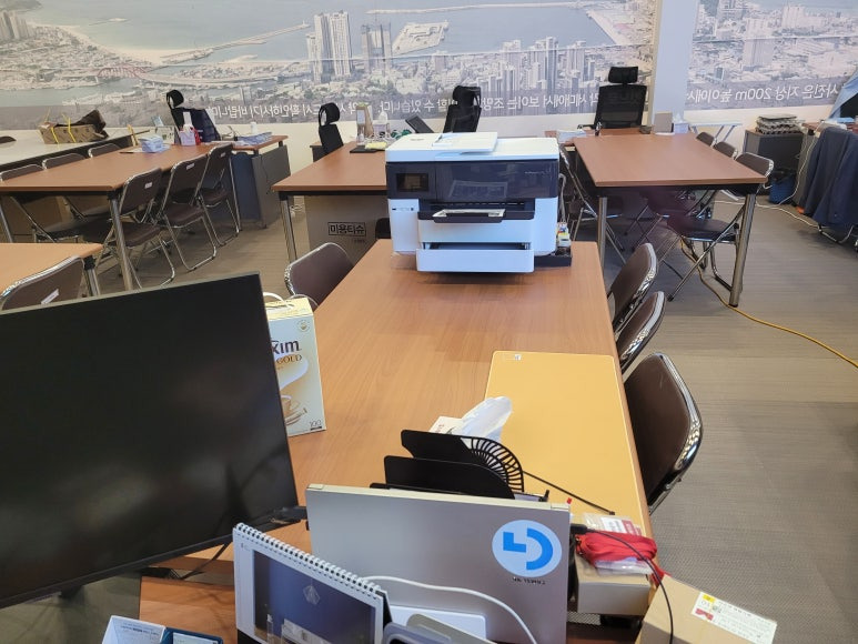강원도 속초시 아파트 분양사무실에서 각 분양팀에서 홍보물 출력용으로 사용할 HP OfficeJet pro 7740 무한잉크 A4 A3 팩스복합기, 칩없이 구동하는 Chipless solution 임대설치했습니다. 2~3개월 정도 짧은 기간에 사용할 수 있는 단기임대 무제한 출력, CMS 자동계좌이체 계약 설치완료 했습니다.