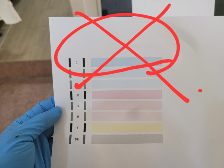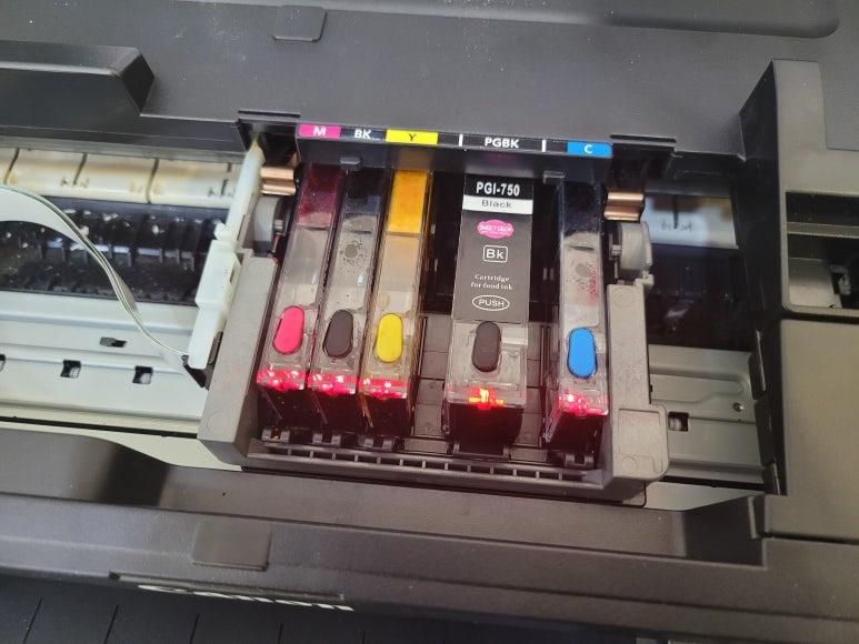 경기도 시흥시 소재, 제과제빵 케이크 제작업체에서 사용하는 캐논 iX6870 WiFi 프린터에 식용잉크 카트라지 장착된 프린터를 온라인으로 구매한 케이크 제작 업체인데 출력이 불량. 식용잉크를 카트리지에 주입하여 사용하는 베이킹용 식용용지 프린터로 관리소홀로 수리업체를 찾지 못해 출장 수리 요청하여, 스케줄 잡아 이동하여 출장 수리 완료했습니다.