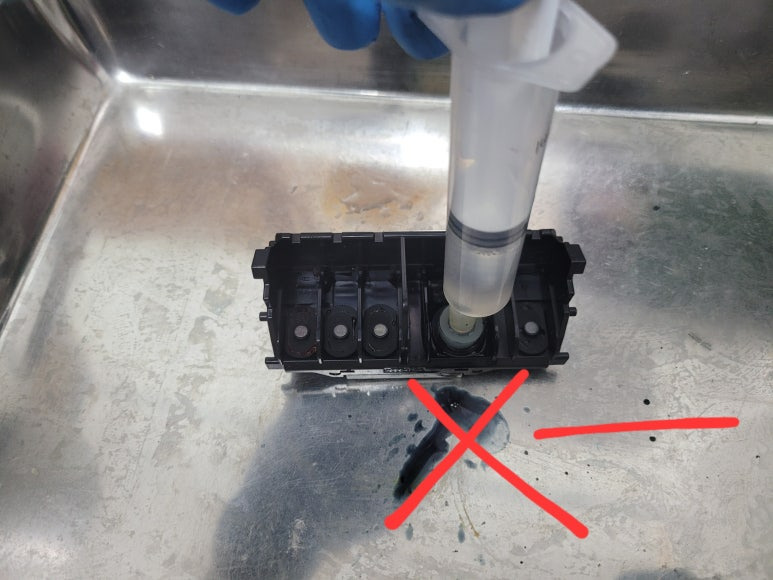 헤드/카트리지 노즐 손상 및 내부 오염 및 패드에 잉크가 차서 흐르고 문제가 발생됩니다. 평소 꾸준한 운동 (4색이상 칼라 사진 출력) 및 건강검진(노즐 점검)을 생활화 해주세요.