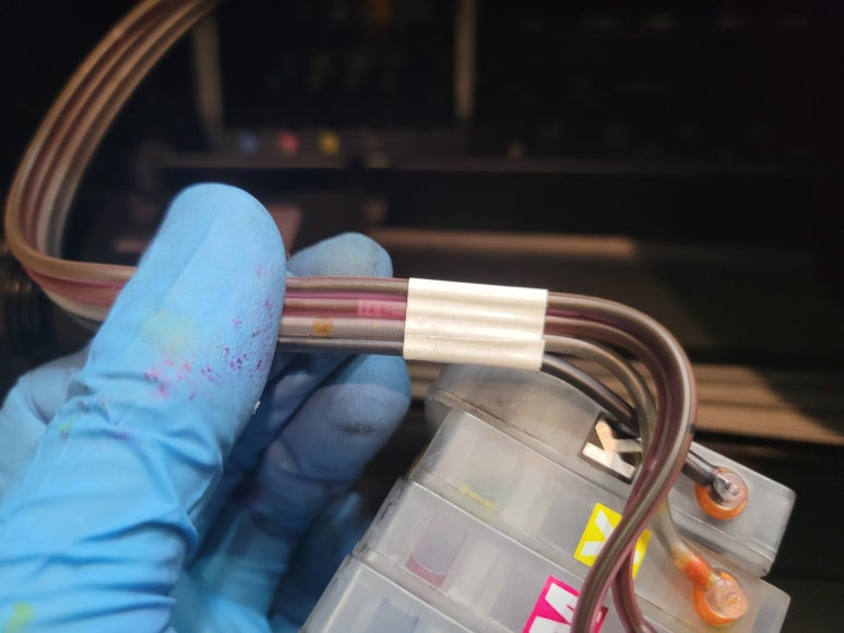 ● 프린터 헤드 클램프 부착 및 핫멜트 보강, 호스 재정리 장착