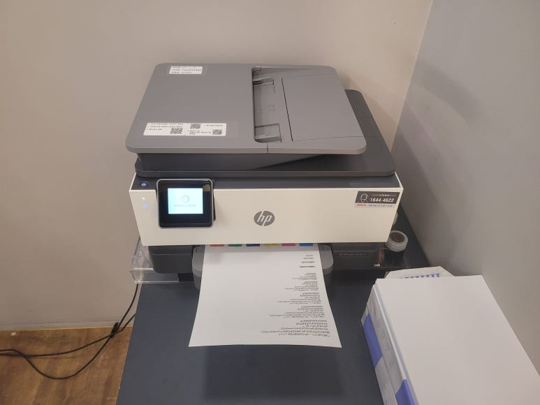 서울 동작구 이수역 인근 통신사 대리점에서 HP 9010 팩스복합기 무한잉크 임대 설치 요청으로 HP 9010 무한잉크, 임대형 및 기업형, B2B용 (보험사, 군부대, 학교, 학원, 부동산, 핸드폰매장, 교육사 등등)으로 사용되는 칩없이 구동하는 기업형 No Chip (Chipless Solution) 무한잉크 팩스복합기 장비를 스케줄 맞춰 출장설치 완료 했습니다.