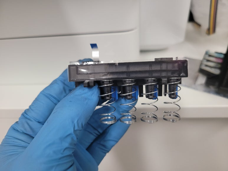 ● 프린터 헤드 클램프 부착 및 핫멜트 보강, 호스 재정리 장착