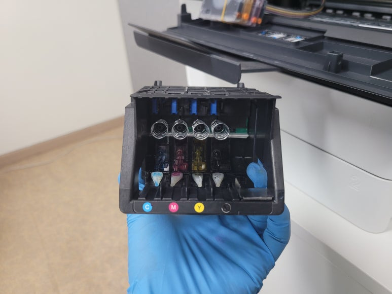 [용인시 무한잉크 출장수리] HP 7740 팩스복합기 액정 불량 케이블 훼손 교체 및 출력불량, 헤드 분해 수리