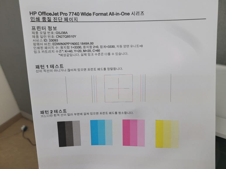 HP OfficeJet Pro 7740 팩스복합기 작업 내용은 아래와 같습니다.