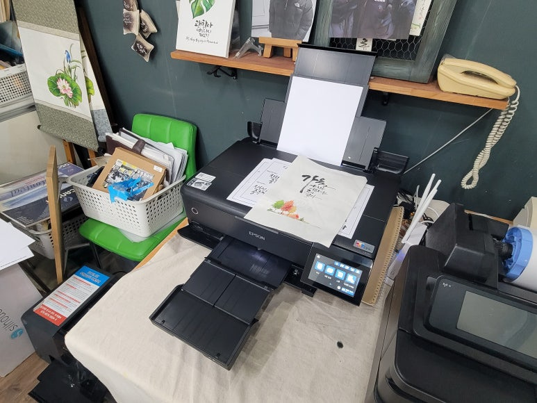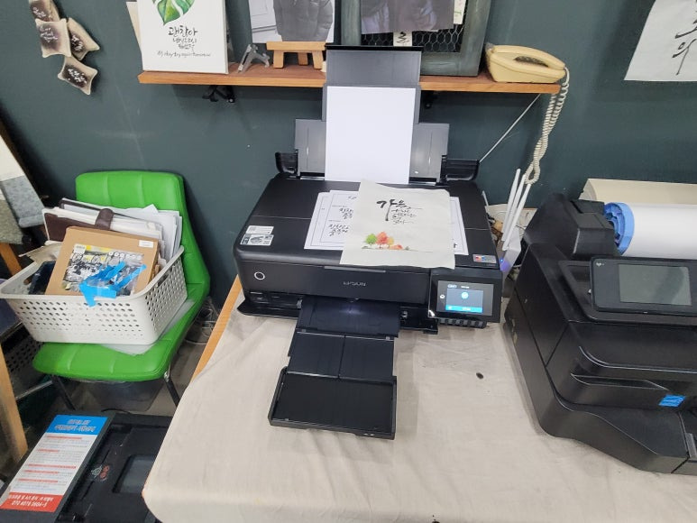 스캔 및 복사도 되고 A3 최대 300g 두꺼운 용지를 인쇄 가능한 프린터인 엡손 L8180 6색 에코탱크 A3 복합기로 출장설치 요청하여 스케줄 잡아 이동, 출장 설치 완료했습니다. 하단 및 후면 배지 급지방식 등 모두 갖춘 A3 포토 복합기입니다.
