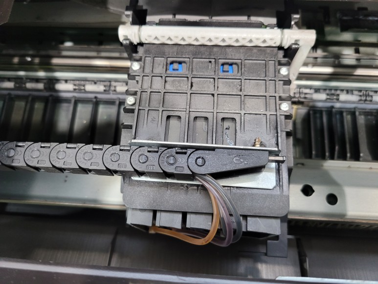 호스 내부에 잉크가 빠지고 카트리지 내부에 잉크가 모두 소진되어 없었습니다.