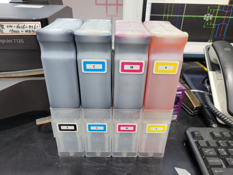 경기도 부천시 소재 기계, 부품 가공 관련 공장에서 에서 사용하는 HP 디자인젯 T120 무한잉크 플로터인데 잉크 충전시기를 놓쳐 카트리지 내부에 잉크가 소모되어 문제가 돼 스케줄 잡아 이동, 출장 점검 완료했습니다.