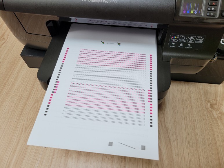 프린터 초기화를 진행하여 정상적으로 헤드 정렬 페이지가 출력되었습니다.