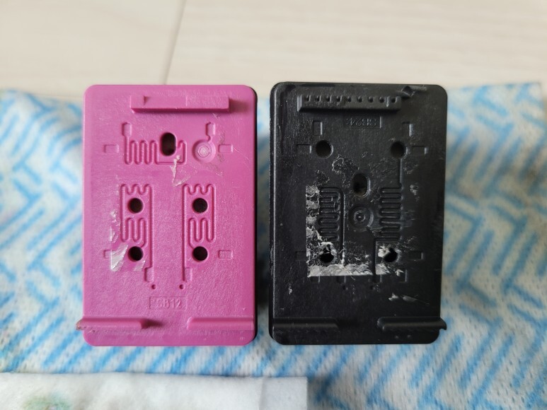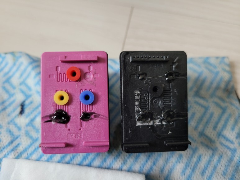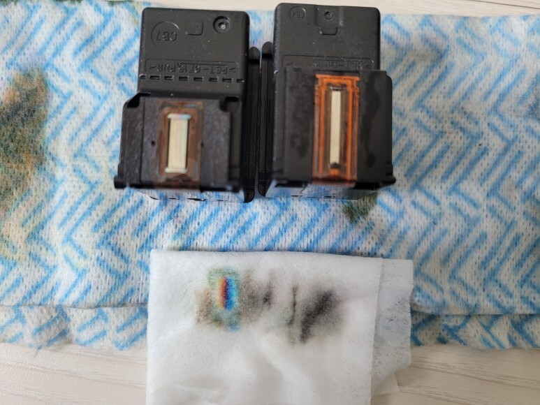 삼성 SL-J1770FW 카트리지의 노즐을 휴지에 찍으니 칼라는 노즐 정상, 블랙은 노즐이 막혔는지 잉크가 없는지 애매했습니다. 일단 노즐이 막히지 않았다는 가정하에 진행했습니다.
