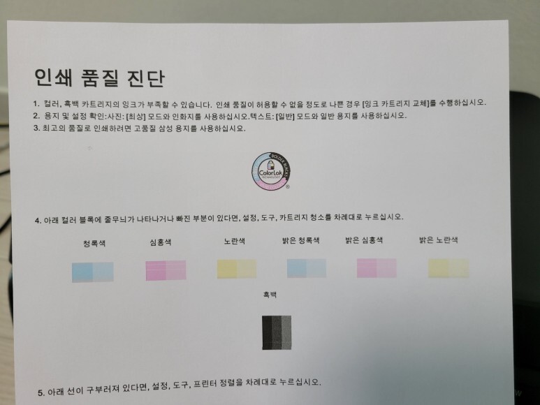 2) 매일 체크하지 않으면 노즐이 미세하게 막히면 헤드 청소를 해야 하는데 헤드청소시 이때, 잉크가 정말 많이 사용됩니다. 잉크 낭비까지 생각한다면 평소 출력해 체킹하는 게 좋습니다. (고지혈/동맥경화시 의료비가 듭니다)