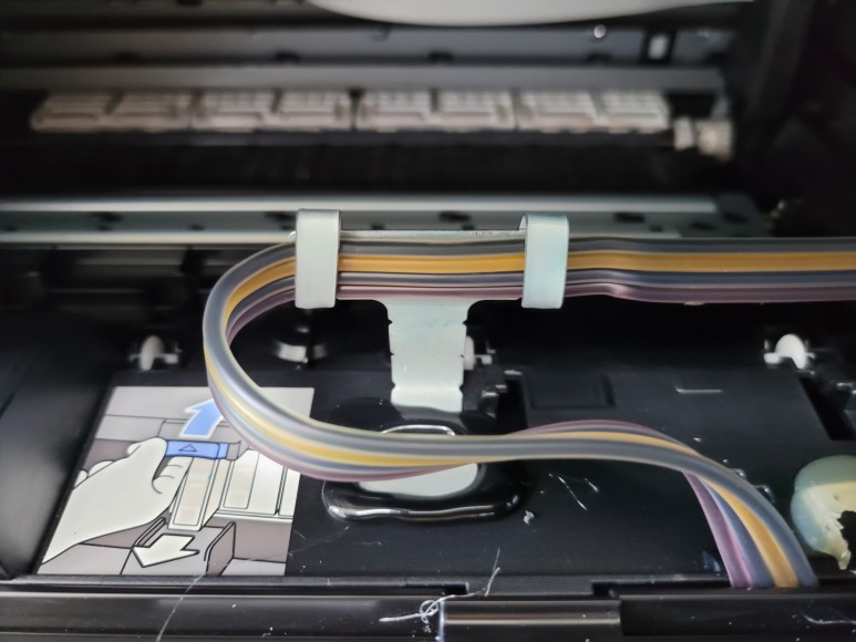 새 헤드 장착 후 안정적으로 잉크 공급선을 새로운 거치대를 부착해 짤끔하게 정리하였습니다.