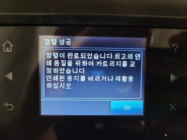 초기화 후에 정상적으로 헤드 정렬페이지가 출력되어 나왔습니다.