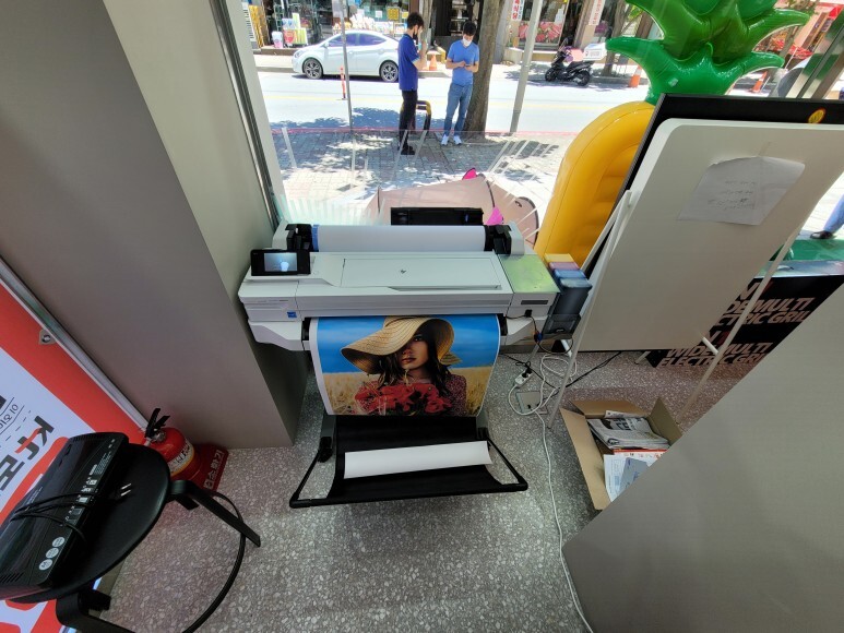 HP 디자인젯 T525/T530 24인치 A1 플로터로 ALL 안료잉크로 무한잉크 세팅해서 플로더 임대 설치했습니다.