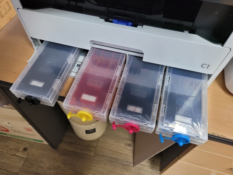팩방식의 프리필 무한잉크는 에어홀 작은 마개는 개방해 사용하고 큰 마개를 열고 잉크를 지속적으로 부어 충전해 사용합니다. 엡손 C5210 C5290 C5710 C5790용 리필 잉크 대용량(1L / 1,000ml)는 약 9,000원 정도 합니다. 잉크테크 E0013 검정 (안료/1L) 잉크테크 E0010 파랑, 빨강, 노랑 (염료/1L) 4색 잉크 입니다.