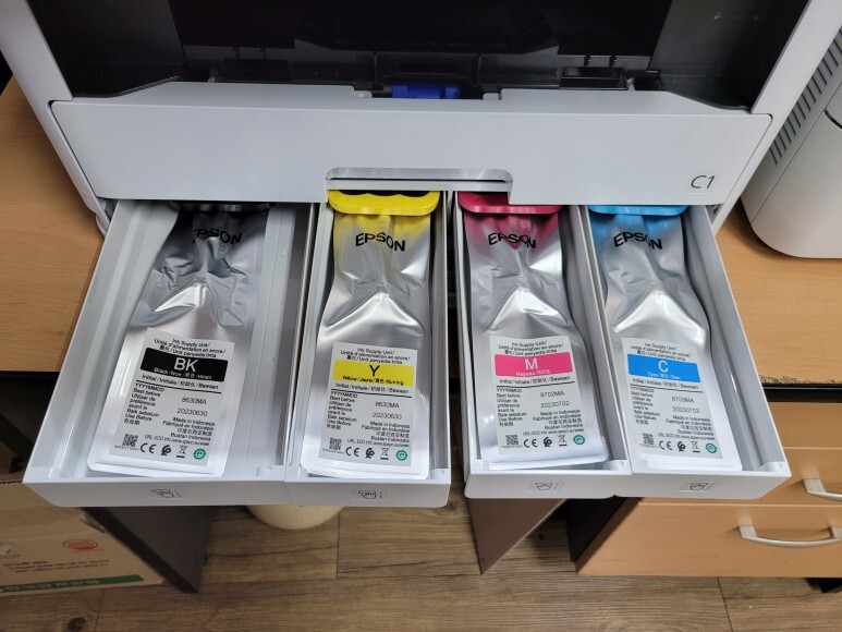 엡손 WF-C5790 (WF-C5710) 팩스복합기 / 엡손 WF-C5290 (WF-C5210) 프린터 모델은 하단에 대용량 잉크팩 카트리지가 장착되는 모델입니다. 위 4개의 모델은 무한잉크용 펌업데이트를 하고 5만원 인증키를 받아 입력하면, 칩없는 대용량(330ml) 팩카트리지를 장착하여 무한잉크로 사용가능한 모델입니다.