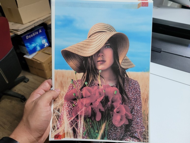 설정, 유지보수에서 헤드 노즐 점검페이지를 출력하여 노즐상태를 확인합니다.