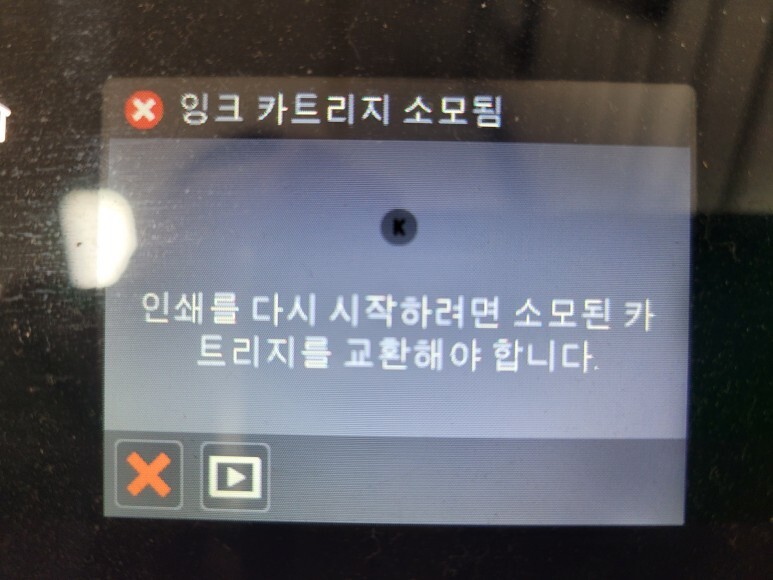 HP 8610 팩스복합기 무한잉크가 잉크 카트리지 소모됨 문제로 멈췄습니다.