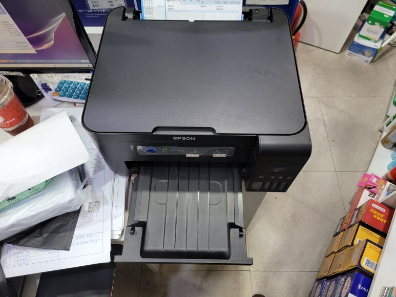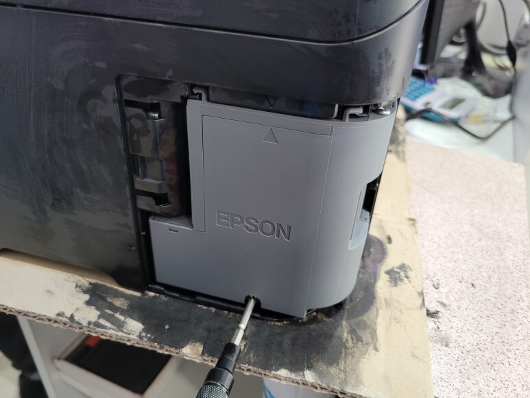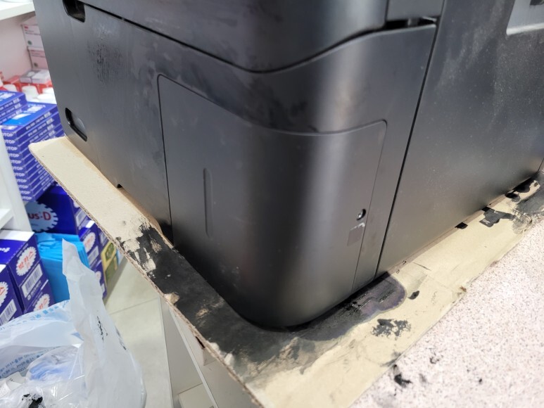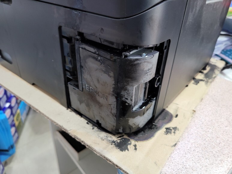 엡손 L4150 정품 프린터 복합기인데 패드 리셋을 사용하며 지속적으로 사용한 약국 약봉투 출력용 프린터 복합기인데 잉크가 폐잉크통/유지보수상자 (Maintenance Box)에서 흘러서 교체 출장수리 요청했습니다.
