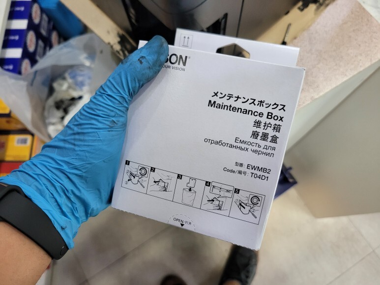 엡손 포토용 XP-15010 분리형 6색 A3+ 프린터는 유지보수 상자 T3661을 사용합니다. 위와 같이 각자 모델에 맞게 유지보수상자를 교체해야 합니다.