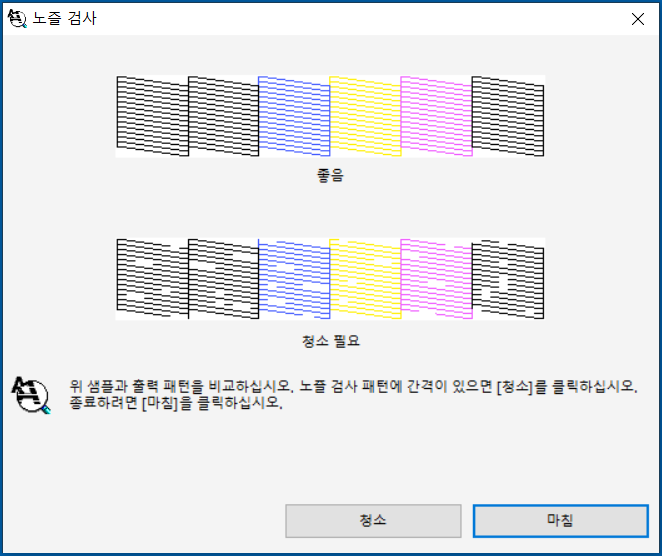 2) 매일 체크하지 않으면 노즐이 미세하게 막히면 헤드 청소를 해야 하는데 헤드청소시 이때, 잉크가 정말 많이 사용됩니다. 잉크 낭비까지 생각한다면 평소 출력해 체킹하는 게 좋습니다. (고지혈/동맥경화시 의료비가 듭니다)